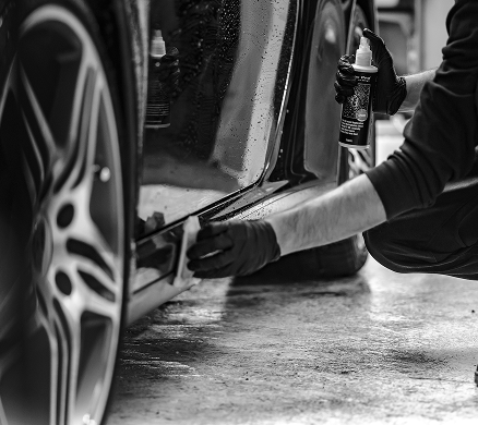 Ceramic coating is a liquid polymer that bonds with your car’s paint, creating a hydrophobic and glossy protective layer.
